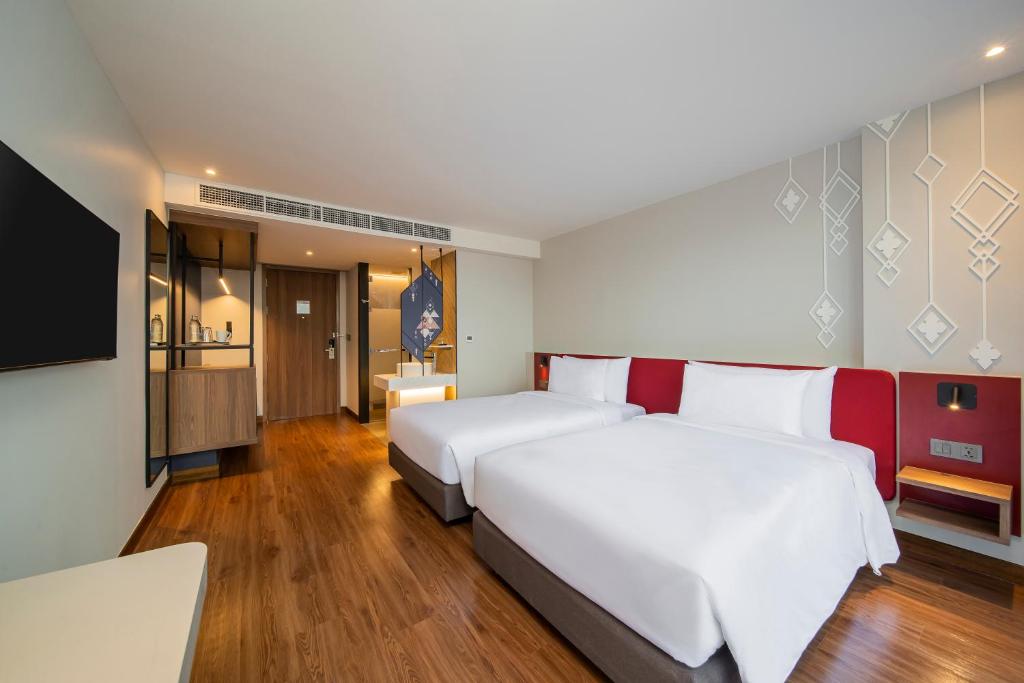 L’ALOFT BANGKOK SUKHUMVIT 11 è un accogliente hotel a 4 stelle che si distingue per la sua posizione eccezionale e il design moderno. La struttura offre camere doppie luminose con letti singoli, dotate di tutti i servizi essenziali, come Wi-Fi gratuito, TV a schermo piatto e bagno privato.